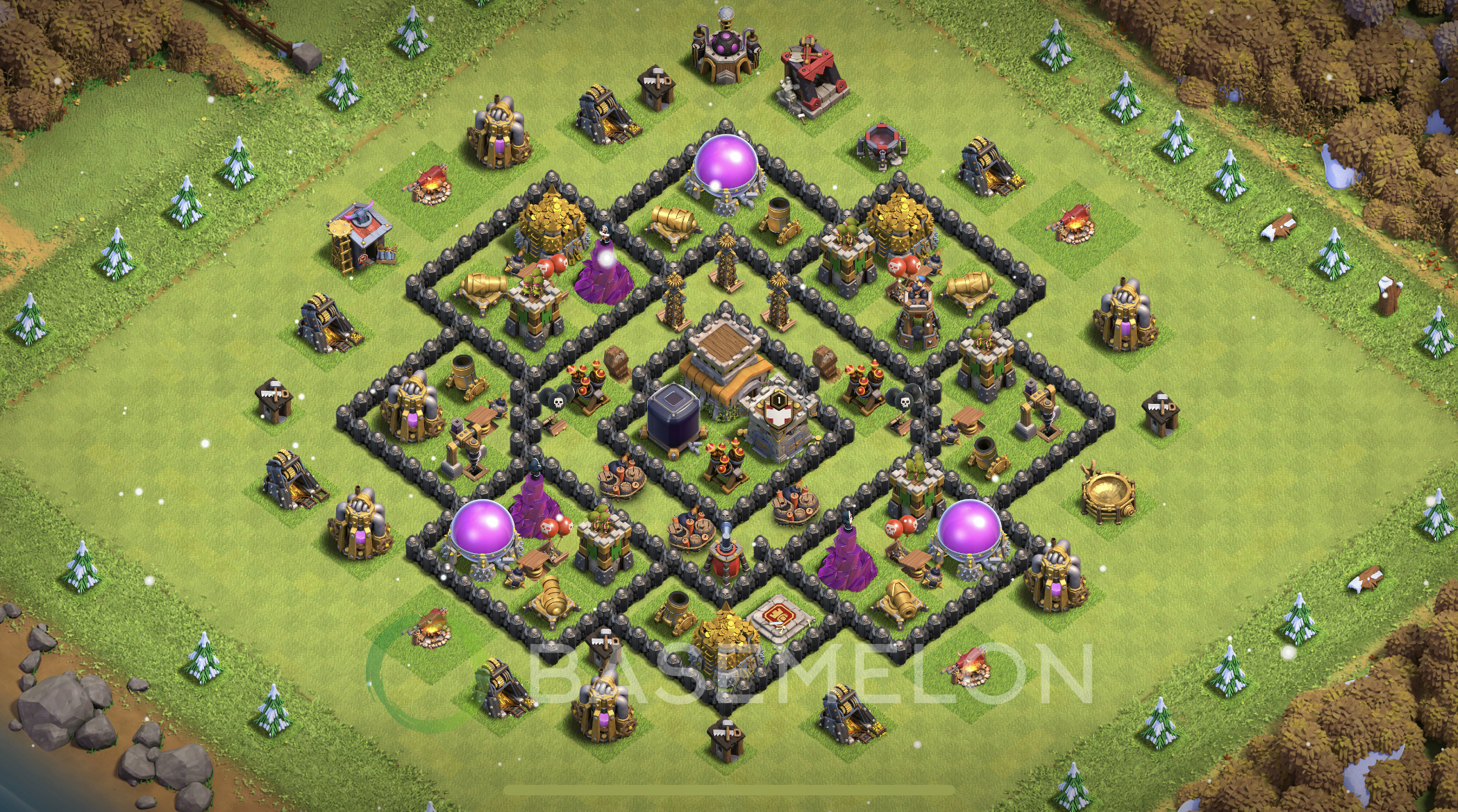 NEW! Town Hall Level 8 Farm Base Design 2025, Anti 3 Stars, Hybrid • Copy TH8 COC Layout #1977