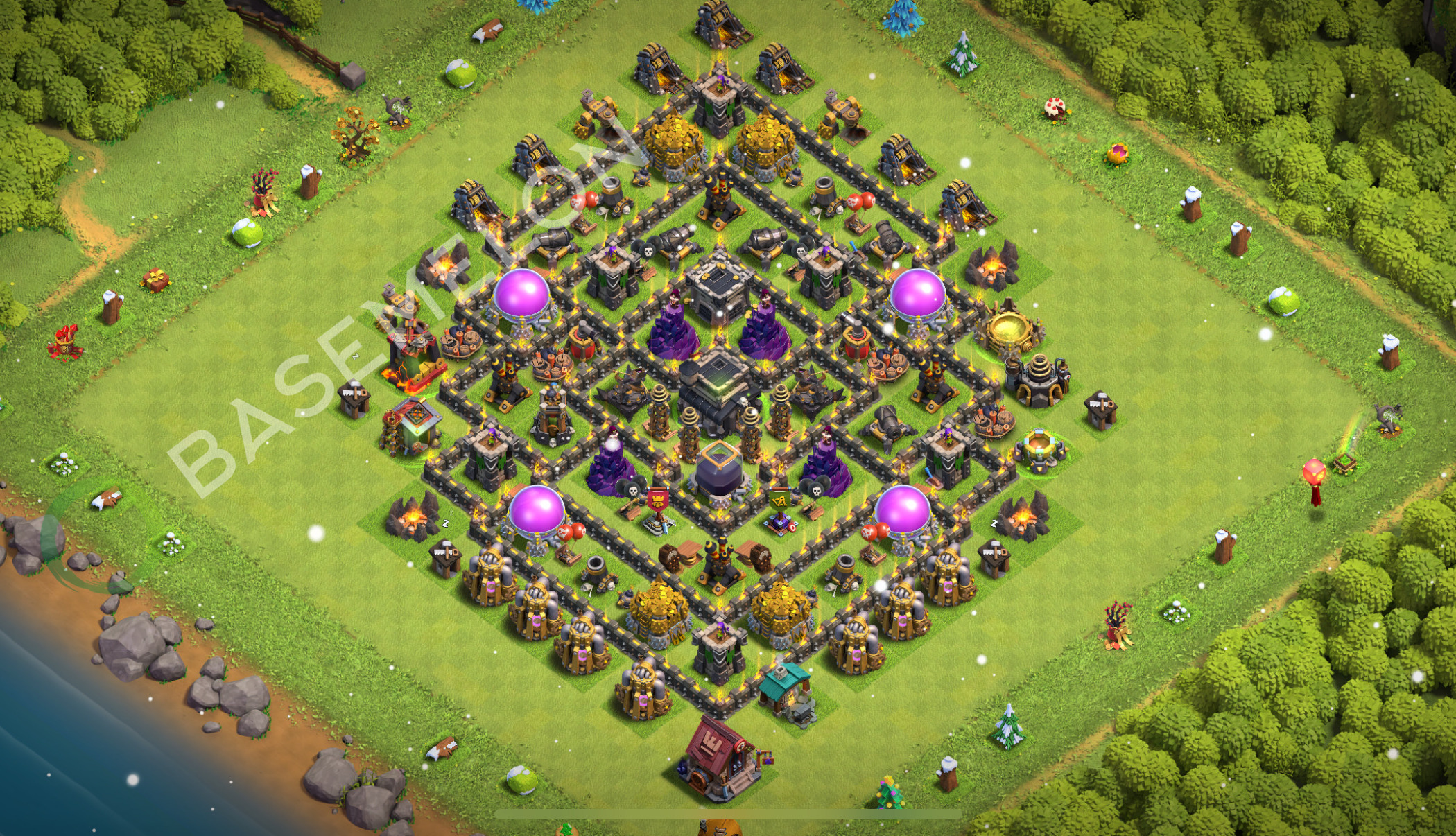 NEW! Town Hall Level 9 Trophy/Defense Base Design 2025, Anti Air, Hybrid • Copy TH9 COC Layout #2409