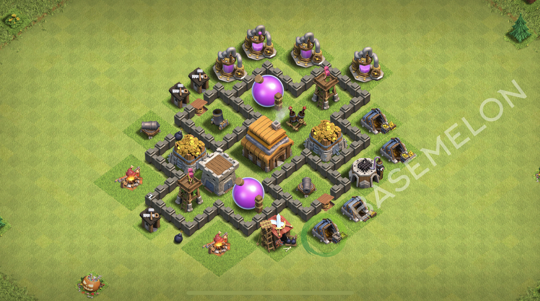 NEU! Rathaus Level 4 Farmen Base Layout 2026, Max Level • Kopiere TH4 COC Design #3017