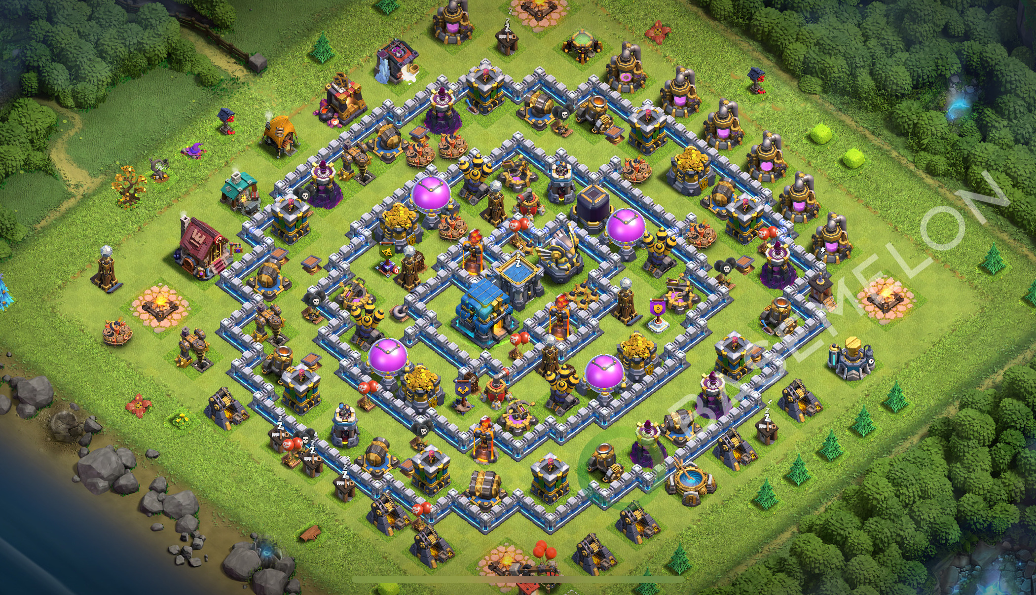 NUEVO! Ayuntamiento Nivel 12 Defensa Diseño de Base 2025, Anti 2 Estrellas, Híbrido • Copiar TH12 Clash of Clans Aldea #1168