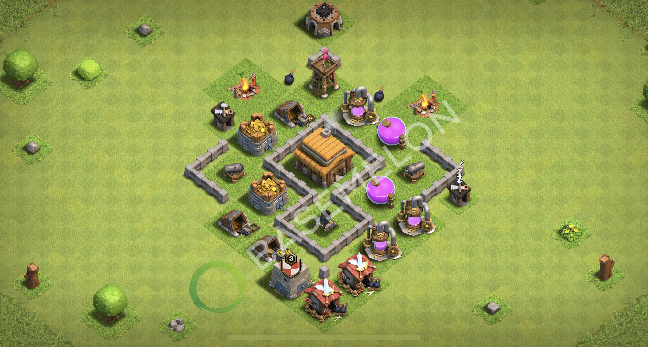 NUEVO! Ayuntamiento Nivel 3 Defensa Diseño de Base 2026, Híbrido • TH3 Clash of Clans Aldea #2850